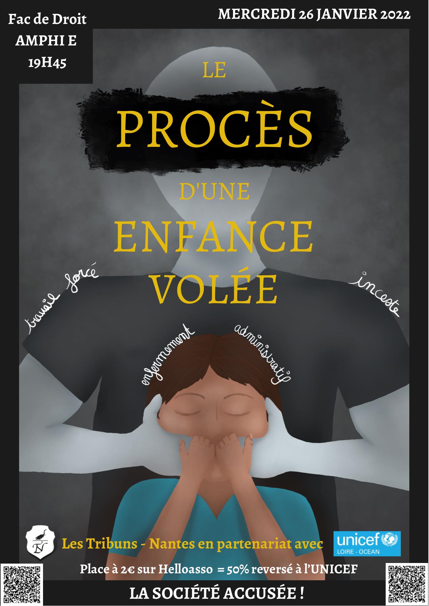 Jan 26January 2022, the trial of a stolen childhood, a fictional trial on the theme of child abuse, was organized by the Tribunes, in partnership with UNICEF. 50% of the funds generated during the event were donated to the NGO.