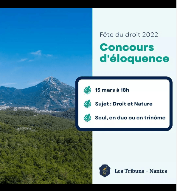 The TRibuns organized the Fête du droit competition within the Faculty of Law of Nantes. The theme of the 2022 edition was "Law and Nature".